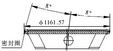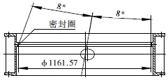 閥體起密封作為的為密封圈,焊接在閥體內(nèi)(圖5)。在2.5m立車上將組焊好的閥體裝夾在閥體密封圈加工工裝上,將立車刀桿旋轉8°,根據(jù)圖紙設計要求,找正后沿圓錐母線方向走刀,車至未焊不銹鋼前的尺寸。然后堆焊不銹鋼,最后將焊好不銹鋼的閥體重新上立車,按上述方法車閥體密封圈至圖紙要求尺寸。最后在立車刀架上裝磨頭,對閥體密封圈進行磨削處理,使其達到圖紙設計粗糙度要求。