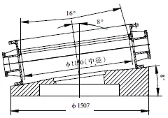 三偏心金屬硬密封蝶閥的密封面是斜錐面,閥體密封圈(圖1)與蝶板組合件密封圈(圖2)的接觸為面接觸,其工作原理是靠驅(qū)動裝置扭力直接帶動蝶板組合件,使蝶板組合件密封圈與閥體密封圈充分接觸后產(chǎn)生彈性變形而密封。三偏心金屬硬密封蝶閥作為一種高性能閥門,具有耐腐蝕性好、密封可靠、開啟力矩小等優(yōu)點。三偏心硬密封電動蝶閥DN1200,其中閥體密封圈材料為1Cr18Ni9Ti,蝶板組合件密封圈材料為復合的不銹鋼板與石棉板夾層組合件,閥體密封圈與蝶板組合件密封圈的加工質(zhì)量直接決定蝶閥密封性能。