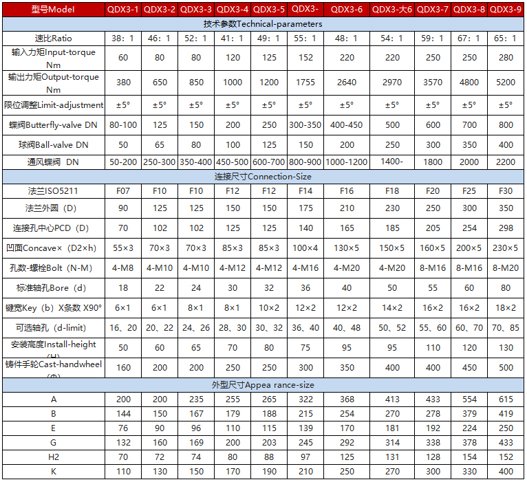 該系列是一款90°部分回轉(zhuǎn)驅(qū)動裝置,適用于球閥、蝶閥、旋塞閥等類型閥門。該系列蝸輪箱適用環(huán)境廣、功能全面、形式多樣(有手輪式、手輪帶鎖式、鏈輪式等),特殊型可輸出360°多回轉(zhuǎn)。產(chǎn)品共有9種型號。